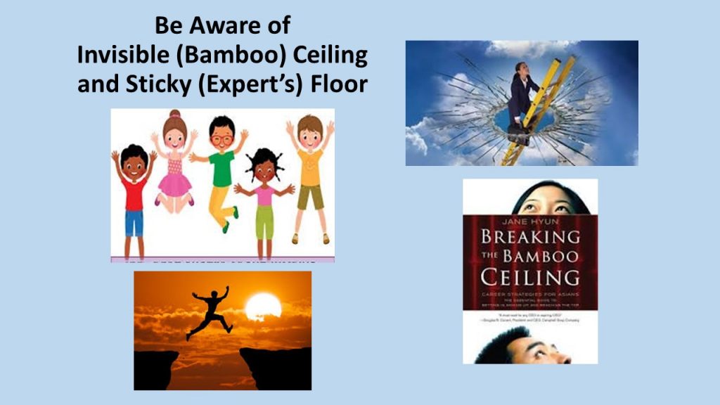 I hope you will develop and use these skills to break the bamboo ceiling and free yourself from the sticky floor of technical experts. This will make Asian Americans a “valued and visible” minority in America.