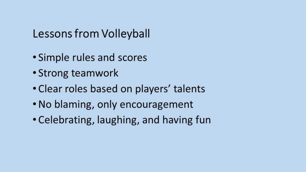 It is so enjoyable to watch a good volleyball game and see teamwork, player roles, strategy, talent utilization, communication, and celebration in action. As a matter of fact, aren’t these also the ingredients for any successful business or project team?