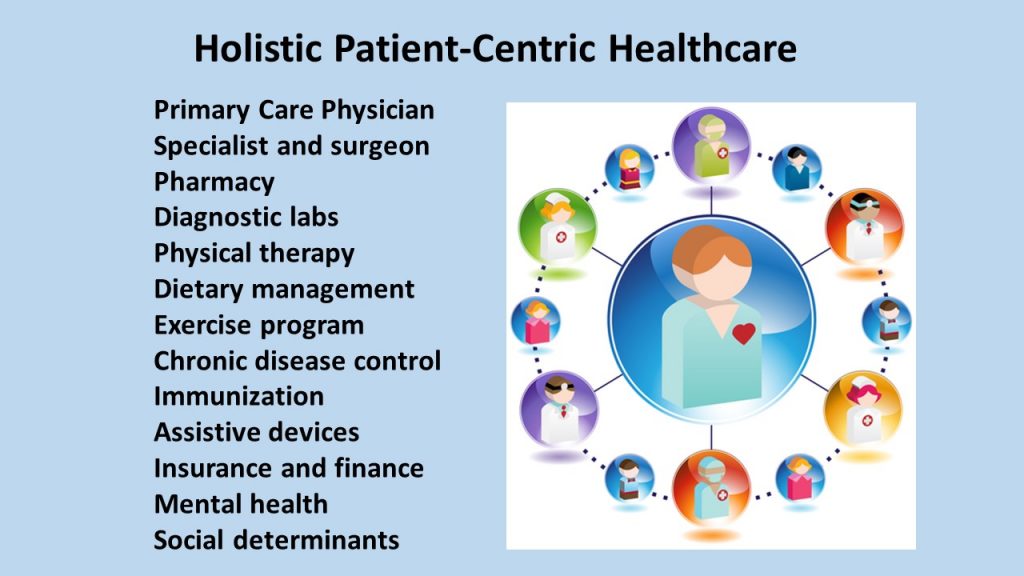As patients, we are now surrounded by people and services that take care of our health and wellness. The traditional primary care doctors continue to serve as the screeners, monitors, and referrers of our health. Behind them is a whole army of people and facilities for the health care we need. Their work is done and documented through massive EMR or EHR (Electronic Medical/Health Record) Systems. With that, patients and health providers can more conveniently and accurately talk about test results, appointments, medications, follow-up actions, dietary plans, rehab, and exercise programs. The patients, not the protocol or institution, more visibly become the center of attention.