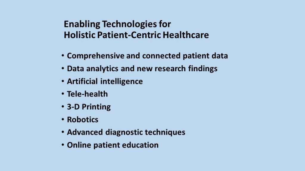 作為患者,我們的周圍環繞著關心我們健康的人及服務。傳統中作為我們主要健康檢查者、觀察者、建議者的主治醫生,仍然持續這樣的服務。在他身後則有一大批人員和設施,提供我們所需要的醫療保健。而他們的工作,是透過大量的EMR或HER(電子醫療/健康紀錄)所完成紀錄的。如此一來,患者和醫療保健便可以更方便、更準確地談論測試結果;也能預約、進行藥物治療、以及後續行動,包含飲食、復健、和鍛鍊的相關規劃。这樣,患者能夠更明顯地成為關注的重點,而不是把醫療程序或是機構的操作当成重點。