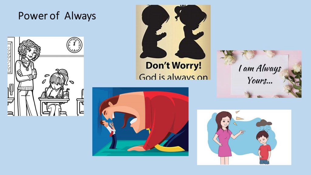 I hope you will observe and listen to your family, schoolmates, friends, and colleagues to see how the word “always” is being used and the reactions it causes. I think you will begin to appreciate its power and handle it with more care. Practice makes perfect. I hope you will “always” use the word “always” effectively. ☺