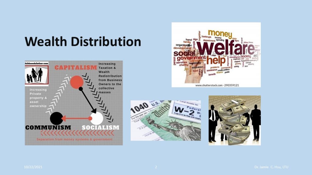 These events have disrupted global and national economies and also widened the wealth gaps among countries and people. To remedy such heightened inequality, different countries are trying different policies and emergency measures. There are special loan and welfare programs, emergency financial aid, common prosperity initiatives, rent and food subsidies, and many other policies to create jobs, interject money flow, and beef up infrastructure. Curiously enough, there seems to be a mixture of capitalist, socialist, and communist policies and tools being used by all. They may rely on market capitalism to generate wealth and use socialist programs or tax schemes to distribute such wealth and minimize wealth concentration and gaps. Or, more drastically, the communist approach would be to take over and nationalize the industry and business.