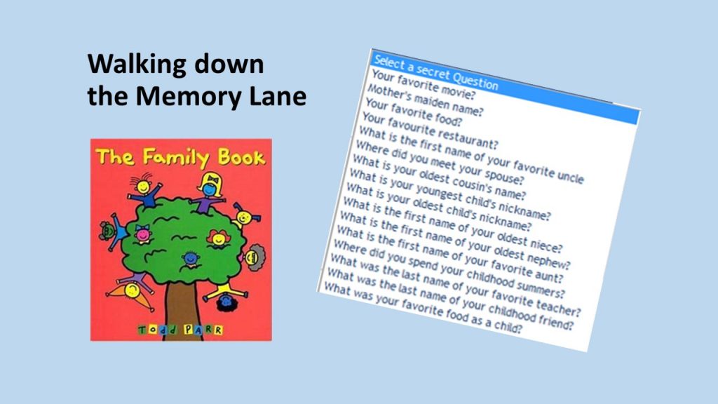 As StoryWorth members, our daughters select one question every week that is suggested by the company’s website, and my wife and I answer it individually. They are simple questions such as: How did you meet? How did you get your first house? Did you ever fight with your parents? It may take us half an hour or one hour to answer it and submit it for safekeeping. At the end of 1 or 2 years, we’ll have a book printed with these questions and answers. This is sort of like writing a memoir, but with much less formality or the stress of writer’s block.