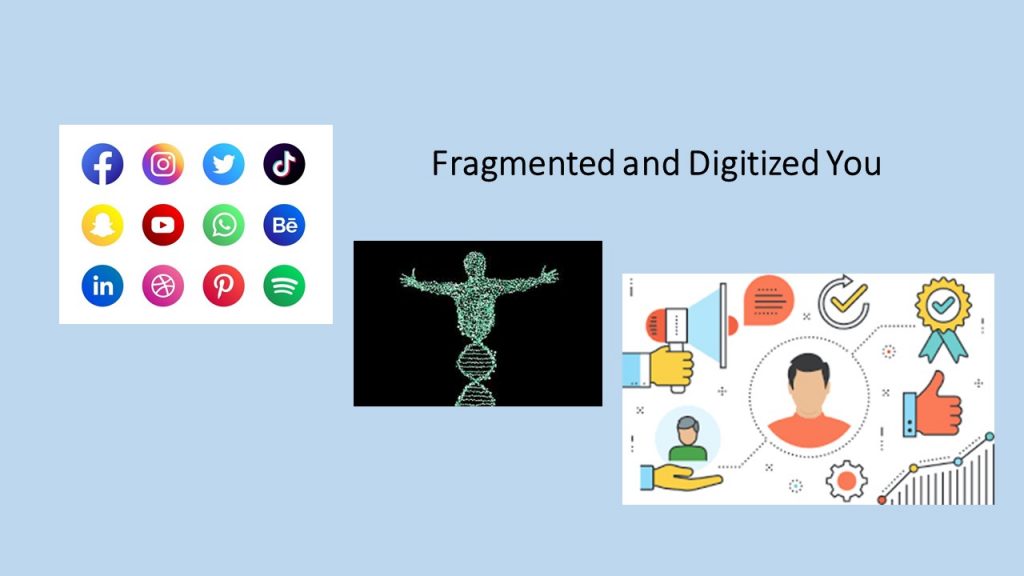 最严重、最可怕的是,我們的个人現在都已經被各種社交媒體、網頁瀏覽器紀錄、個資分析器等綁架,變得零散瑣碎。關於我們點點滴滴的訊息,被儲存在數百、甚至上千台電腦及資料庫中。我們的家人、旅遊、飲食習慣、服裝偏好、交友、工作經驗、健康、通訊以及其他關於個人的信息,正在被獲取、數位化,而且被儲存在我們不知道的許多地方。外面很多人對於我們這個人有了零散瑣碎的認知,而且可以出於各種目的對我們進行數位化分析。諸如此類的零散瑣碎可能聽起來很可怕,但幸運的是,只有我們自己才能清楚了解身在現實中的自己是有多完全有多棒!