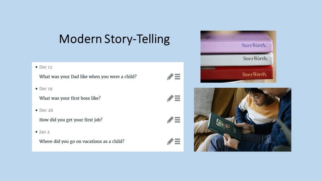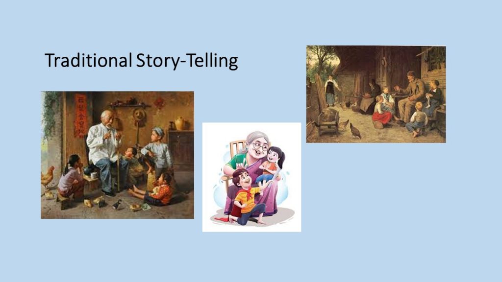當我們還小的時候,沒有電視、電腦、甚至是收音機,最常見的飯後娛樂活動,就是聽大人講故事。他們會告訴我們過去的世界是什麼樣的,以及他們是如何在一個大家庭中長大的。這就是我們與祖先以及家鄉建立連結的方式。當長輩們的記憶彼此不一樣的時候,就會開始互相爭論、戲謔,很是有趣。口耳相傳和講故事都是傳遞訊息和家庭文化的主要方式。