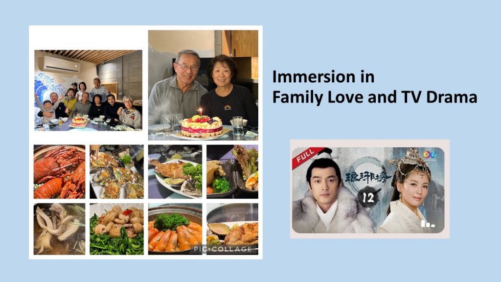 Immersion in love: After the easing of travel restrictions, I spent a whole month in Taiwan visiting friends and families. Even after more than 3 years of separation, our bonds and reconnections were instant. The love and happiness we experienced was immediate and immense. Such total immersion in their love was heartwarming and gratifying. Time and distance have not put a dent in our love. The big hugs, warm greetings, and heart-melting smiles from business colleagues, long-time friends, and close family members, made me feel like I was immersed in the heaven of love.