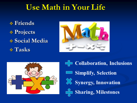 It is amazing how simple math can help you deal with your work projects, daily tasks, social media activities, and even your relationship with others. You just need to master the art of +, -, x, and /. Let’s contemplate their meanings: