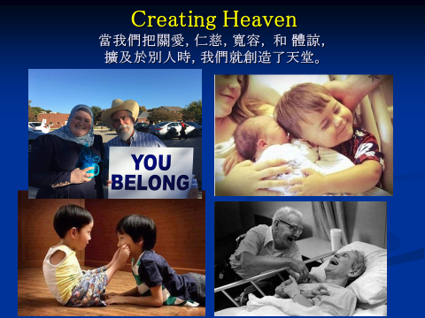 This is also the teaching of our Chinese Ancestor Confucius as described in the Li-Yun Da-Tung (礼运大同) world of Great Harmony. When everyone lives in a harmonious world of caring, kindness, and harmony, we reach the vision of Shangri-La land (世外桃源).