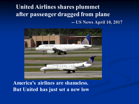 近期聯合航空暴力拖走一位亞裔籍旅客的事件,讓美中兩地全民譁然並引起群情激憤。更有數百萬條呼籲抵制的評論,透過視頻和報導已經傳送到全球各地;這些評論還包括示威、訴訟、調查、要求道歉和賠償、以及對執法人員的懲罰,並要求對乘客權利進行立法。