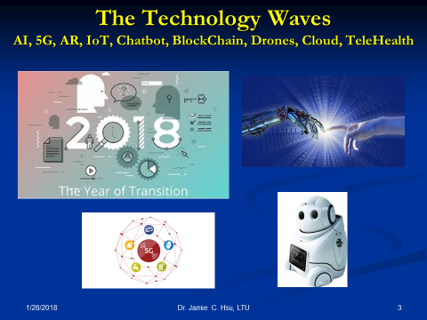 最近大家被技術的變革與突破所環繞著。幾乎每天我們都會讀到關於機器人、人工智能、虛擬實境、無人機、無線充電、感測器、物聯網、雲端及霧運算等方面的重大進展及新穎的應用,而且這樣的清單還在不斷湧現中。其中兩項最具破壞性的就是,5G通信及自動駕駛車。它們將啟動新的產品、改變我們的溝通方式、我們的行動模式,並且將對許多職務及行業造成破壞性的改变。