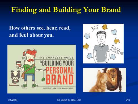 What is your brand? It is how others see, hear, read, and feel about you. How do you discover and define your brand? It is simple. Just ask your family, colleagues, and friends to use some positive adjectives to describe you. Or if you dare, also ask them to use some negative adjectives to describe you. If you ask enough people, then the most used adjectives will be your public brand.