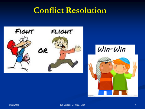 我們在生活中會經常遇到跟自己的孩子、另一半、親友、同事、甚至是老闆發生衝突。這些衝突若處理不當,很容易會引起不愉快的爭論、自我受挫、長期來看也會傷害彼此之間的感情。當衝突發生時,大多數人會生氣、爭論、覺得不開心、或想要逃跑。比較少人會去試著瞭解如何將這種分歧變成雙贏的解決方案。