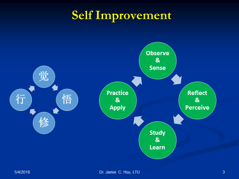 - 修:學習並借鏡專家與大師們的指導,以此逐步改變自己的行為與習慣。