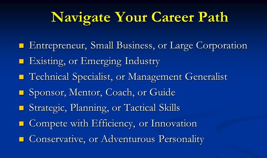 And lastly, the type of career path you choose will depend on your personality and passion; Are you a risk taker, a prudent thinker, an impulsive go-getter, or the laid-back easy-going type? There are many factors to consider when finding the best career path for yourself. Regardless, hard work and thorough preparation will always pay off.