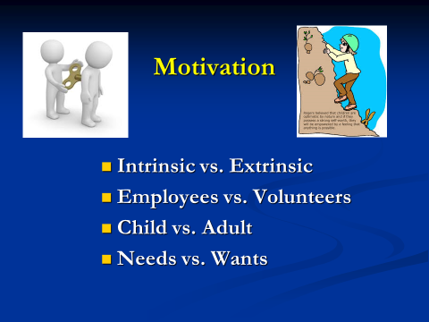 Recently, I was involved in training some young students and in advising several community organizations. We discussed how to motivate young kids to attend summer school and how to motivate volunteers to give their personal time for the good of the community.