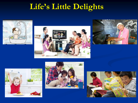 As an exercise, I would suggest that you compare your routine daily delights and unexpected pleasant moments with your family and with your circle of friends. You many find some interesting similarities as well as some surprises about how people find “little happies” in their lives.