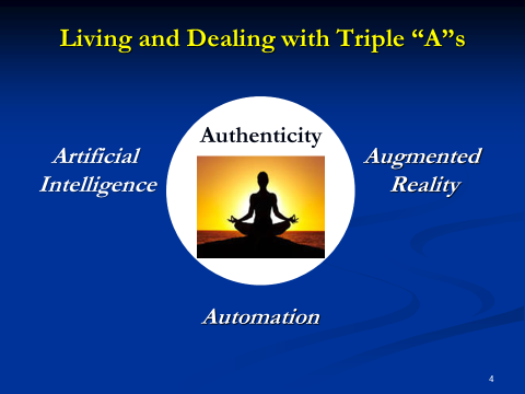 If we have the essential A of Authenticity in place, we can live harmoniously with automation, artificial intelligence, and augmented reality.