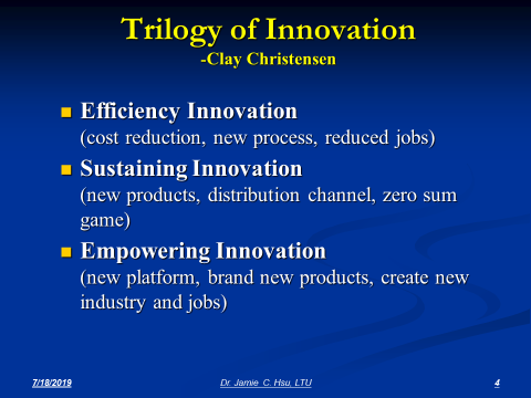 哈佛大學的創新大師Clay Christensen提出企業的三種創新: