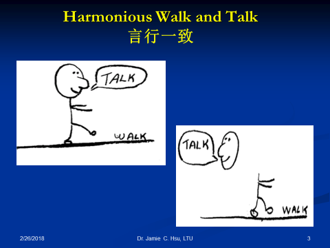 有句美國諺語“Walk the talk, don’t just talk the talk” (意思是“行其言,勿僅言其言”)。對我的許多學生們或後輩們來說,我建議加上” Talk the walk, don’t just walk the walk” (意思是“言其行,勿僅行其行)。我們來看看这是為什麼。